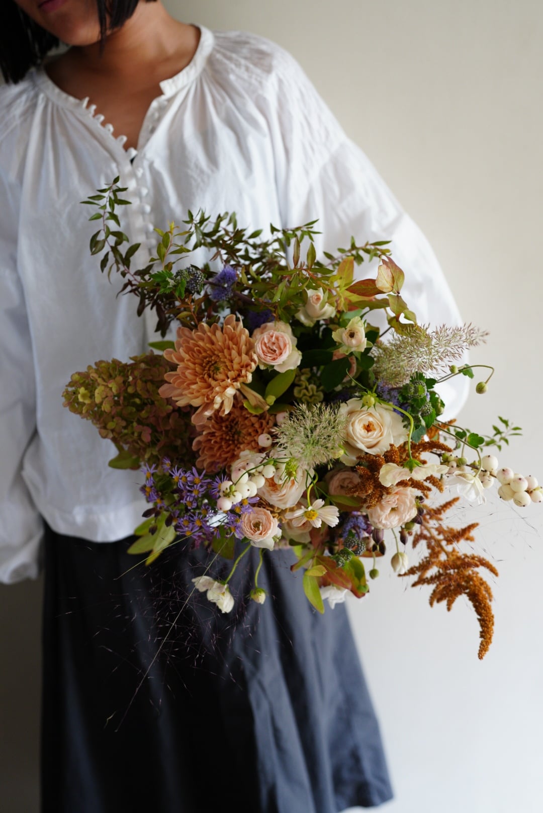 季節ごとの旬のお花を厳選し、花の美しさが際立つよう束ねます。