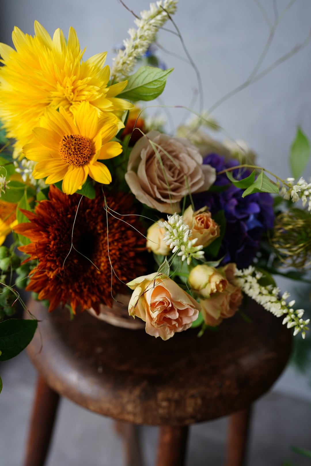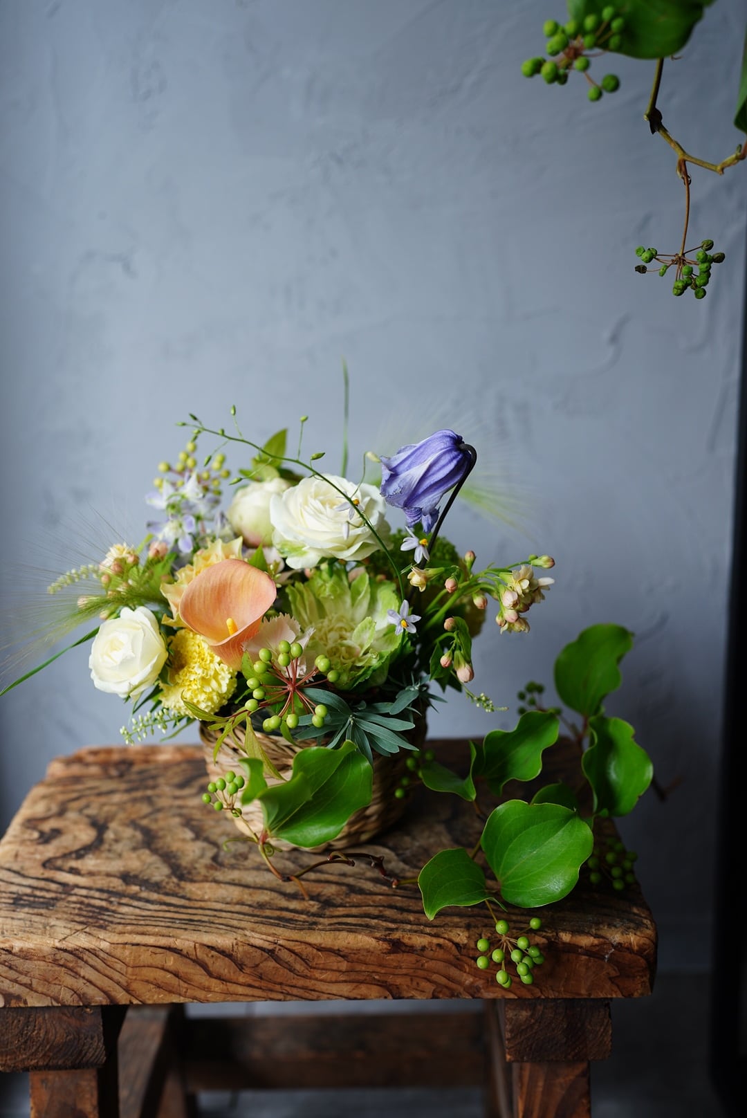 花材のご指定は出来かねますが、優しく、大人っぽくなどお色目のイメージにご希望がございましたら可能な限り対応させていただきます。